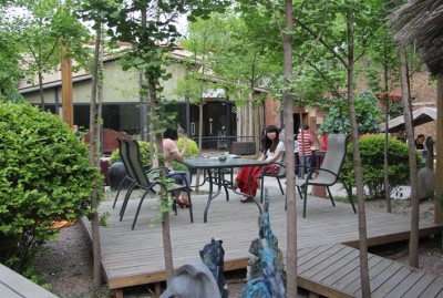 漢世?鳳凰會(huì)坐落在北京漢世陶藝館中,時(shí)至初夏,多條迷宮般的陶瓷磚墻指引您進(jìn)入別有洞天的“世外陶?qǐng)@”,這是考驗(yàn)?zāi)腔鄣臅r(shí)刻。若是走出迷宮,穿過(guò)古樸的小木橋,踏過(guò)鋪滿陶粒的小路,眼前就會(huì)豁然開(kāi)朗,里面真真一個(gè)“世外桃源”:藤蘿間掩映不住手工磚墻,連地面上也鋪裝著有趣的樹(shù)葉瓷磚,林林落落的座椅,原始的茅草屋,隨處散落的瓷器,搖曳生姿的花朵.....這一切讓人心頓時(shí)染滿綠意,從喧囂歸于平靜。在院落中央,這棟綠樹(shù)掩映中的那座玻璃房,便是我們“漢世?鳳凰會(huì)”的俱樂(lè)部。