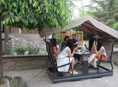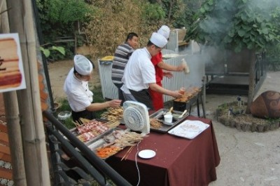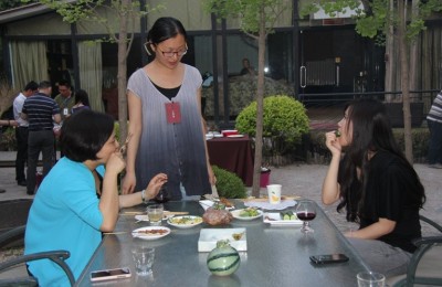 院中央的長(zhǎng)桌上,擺著各種各樣的美食,紅酒、壽司、沙拉、點(diǎn)心、品種多樣的烤串,陶餐廳的大廚在旁提供著周到的服務(wù),樂(lè)莫樂(lè)兮新相知,三三兩兩地聊著天,或在小亭中,或在茅廬中,或在秋千上......把酒言歡,談意頗濃,大有相見(jiàn)恨晚之意,一直持續(xù)晚上九點(diǎn)左右才正式結(jié)束, 狂歡的時(shí)刻總是短暫的,但那份快樂(lè)的記憶永不消失。
