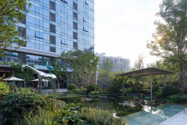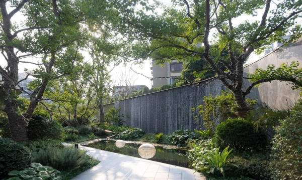 公寓內(nèi)的景觀園林,被打造為成都獨(dú)有的“叢林秘境花園”,以藝術(shù)水幕墻的設(shè)計(jì),運(yùn)用多品類的植物、石材、金屬等不同材料創(chuàng)造出新穎、別具一格的流動(dòng)景觀效果。