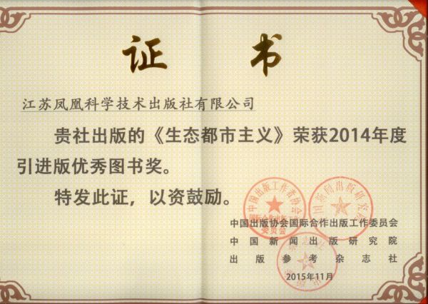 《生態(tài)都市主義》榮獲2014年度引進(jìn)版優(yōu)秀圖書獎(jiǎng)
