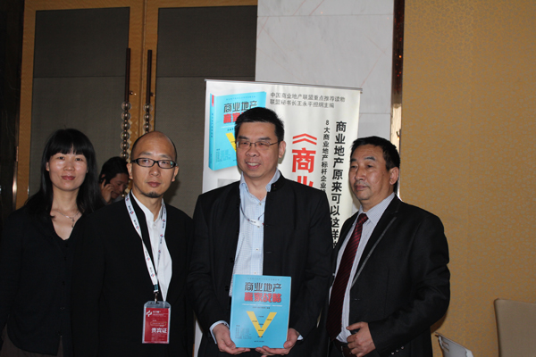 《商業(yè)地產(chǎn)贏家戰(zhàn)略》作者,中國(guó)商業(yè)地產(chǎn)聯(lián)盟副會(huì)長(zhǎng)兼秘書(shū)長(zhǎng)王永平(左二)與購(gòu)書(shū)地產(chǎn)大佬凱德商用總裁駱偉漢合影