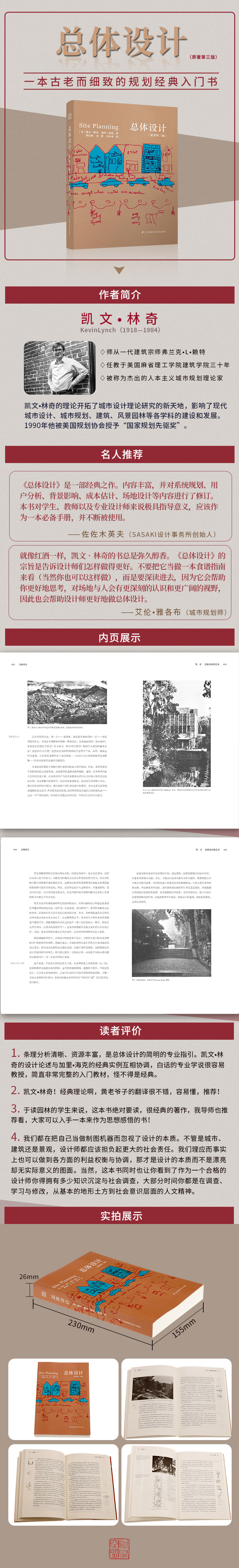 一本古老而細(xì)致的入門書,但其中關(guān)于設(shè)計(jì)的全過程以及對基地、行為、景觀、土方及公共管線、社會影響、利益權(quán)衡等,會讓你對一個完整的設(shè)計(jì)和設(shè)計(jì)師該盡到的社會責(zé)任有更進(jìn)一步的認(rèn)識。我們都在把自己當(dāng)做制圖機(jī)器而忽視了設(shè)計(jì)的本質(zhì)。不管是城市、建筑還是景觀,設(shè)計(jì)師都應(yīng)該擔(dān)負(fù)起更大的社會責(zé)任。我們理應(yīng)而事實(shí)上也可以做到各方面的利益權(quán)衡與協(xié)調(diào),那才是設(shè)計(jì)的本質(zhì)而不是漂亮卻無實(shí)際意義的圖面。當(dāng)然,這本書同時(shí)也讓你看到了作為一個合格的設(shè)計(jì)師你得擁有多少知識沉淀與社會調(diào)查,大部分時(shí)間你都是在調(diào)查、學(xué)習(xí)與修改,從最基本的地形土方到社會意識層面的人文精神。