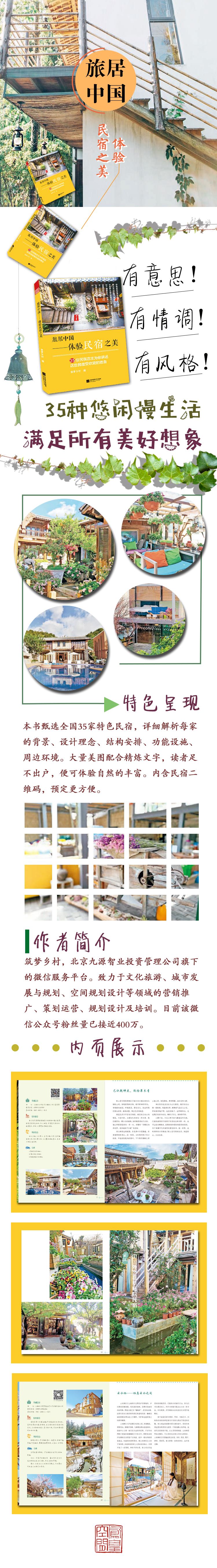 精心甄選35家民宿案例,遍布大江南北,風(fēng)格迥異,各具特色。每個案例都有介紹民宿老板的個人經(jīng)歷、感受,談及心中最美的情懷。每個案例中都有路線、周邊景點(diǎn)推薦,民宿詳細(xì)的介紹及價格說明。還有二維碼推薦,感興趣一掃即可了解、預(yù)定。