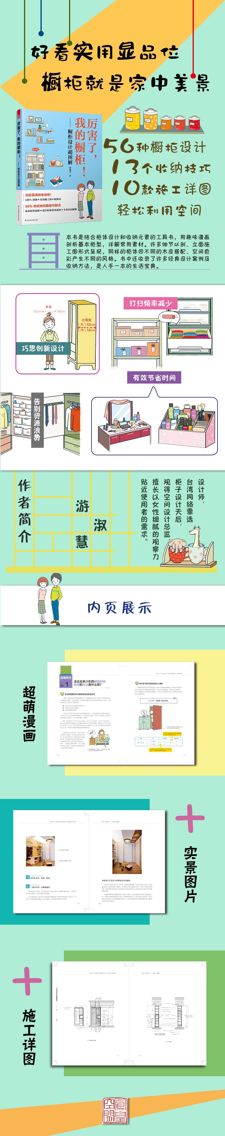 系統(tǒng)柜達(dá)不到的工藝與精粹,書(shū)中櫥柜分解法表明了56種風(fēng)格、收納、功能。此書(shū)獻(xiàn)給無(wú)數(shù)個(gè)為了收納而煩惱不已的家庭,只要了解柜子,你也能依照柜型分類學(xué)習(xí)最實(shí)用的居家收納法,99%的收納問(wèn)題都能解決!針對(duì)柜型分類的居家收提案,發(fā)揮柜子99%完美收納能力!本書(shū)透露13種居家收納提案,家里一定會(huì)有的柜型的結(jié)束,從此不用死記硬背就能好好收拾,就知道東西放在哪。完整的櫥柜施工圖例,詳盡易懂的10款施工圖,可以讓你之后施工不再重新動(dòng)工,溝通不再費(fèi)勁,照著圖學(xué)習(xí)會(huì)輕松容易。本書(shū)是結(jié)合柜體設(shè)計(jì)及收納元素的工具書(shū)。作者從事設(shè)計(jì)20多年了,總覺(jué)得高昂的室內(nèi)設(shè)計(jì)費(fèi)使得這份工作像是專屬于有錢(qián)人的服務(wù),而作者希望這工作能讓所有人享受到好的設(shè)計(jì),書(shū)中的剖立面圖可以給喜歡設(shè)計(jì)柜體的朋友作為借鑒和嘗試制作,同樣可以依圖請(qǐng)師傅幫你施作,也可讓初入這行業(yè)的學(xué)生去學(xué)習(xí)如何繪制施工圖,此外作者也想將本書(shū)獻(xiàn)給希望讓生活更美好的你!