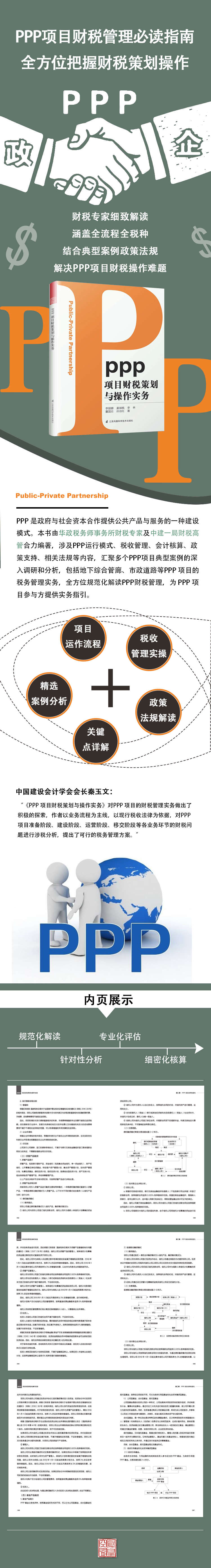 涉及PPP運(yùn)行模式、稅收管理、會(huì)計(jì)核算、政策支持等多項(xiàng)內(nèi)容, 綜合性講解PPP項(xiàng)目財(cái)稅管理要點(diǎn);