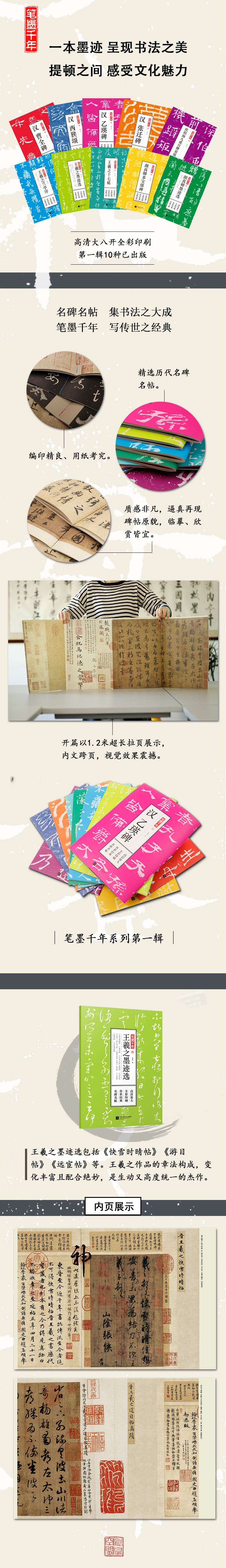 3、本系列精選歷代名碑名帖40余種,大八開全彩印刷、高清放大、編印精良,逼真再現(xiàn)碑帖原貌。