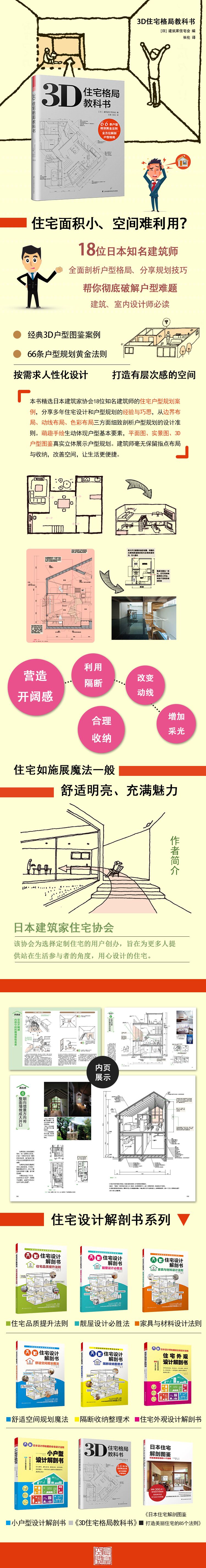 《3D住宅格局教科書》精選日本建筑家協(xié)會17位知名建筑師的住宅戶型規(guī)劃案例,并分享多年住宅設(shè)計和戶型規(guī)劃的經(jīng)驗和巧思。從邊界布局、動線布局、色彩布局三大方面全面剖析戶型規(guī)劃的設(shè)計準則。分享了如何通過布局與收納,改善空間以及如何讓生活更便捷的提升方法。