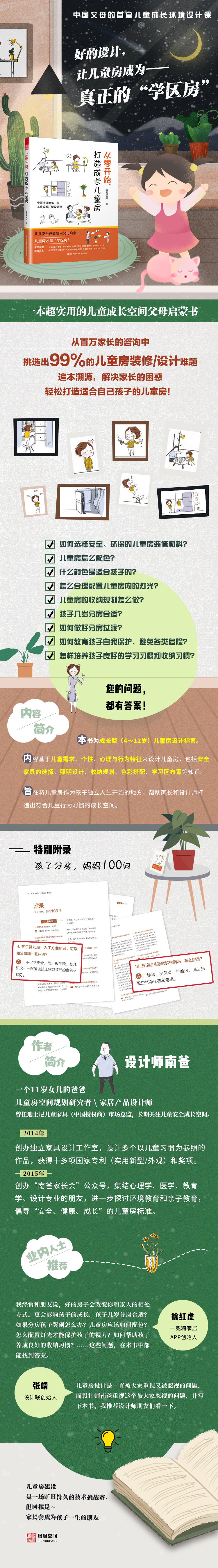 本書為成長型(4~12歲)兒童房設計指南,也是關于父母與孩子共同成長的夢想書。全書內容基于兒童需求、個性、心理與行為特征來設計屬于兒童的獨特生活空間,包括兒童房內安全家具選擇、照明設計、收納規(guī)劃、色彩搭配、學習區(qū)布置等方方面面的知識,旨在將兒童房作為孩子獨立人生真正開始的地方,幫助家長和設計師有效設計出符合孩子行為習慣的綜合成長空間。