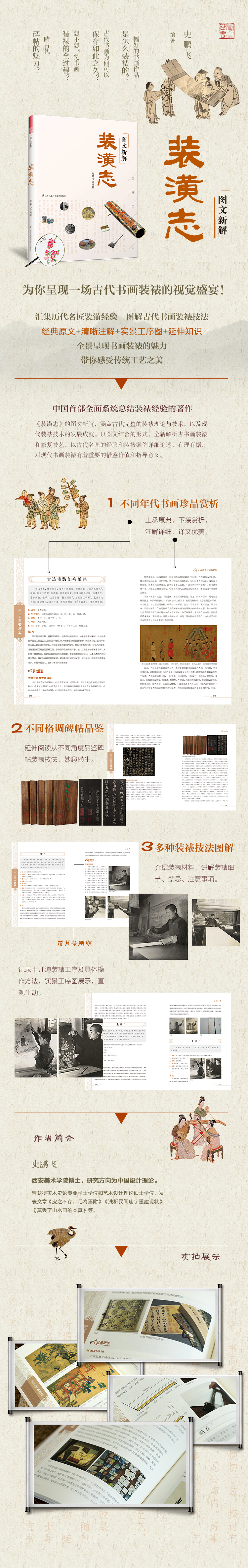 ?多種裝裱技法圖解,不同年代書畫珍品賞析,不同格調(diào)碑帖品鑒,兼具實(shí)用與美學(xué)價(jià)值,對現(xiàn)代書畫裝裱及修復(fù)具有重要的借鑒價(jià)值