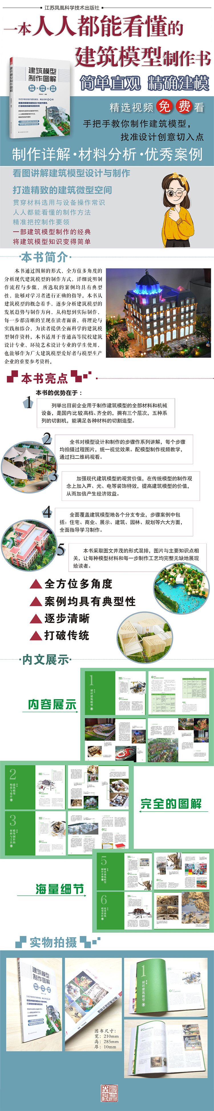 本書一共分為 6 章,由淺入深地講解了建筑模型的起源發(fā)展、設(shè)計方法、材料工藝與實際操作,并且通過大量優(yōu)秀的建筑模型作品來進行點評與分析。本書中涉及的建筑模型圖片由業(yè)界同行、同事、學(xué)生無私提供,經(jīng)過嚴(yán)格篩選以后才與讀者見面。