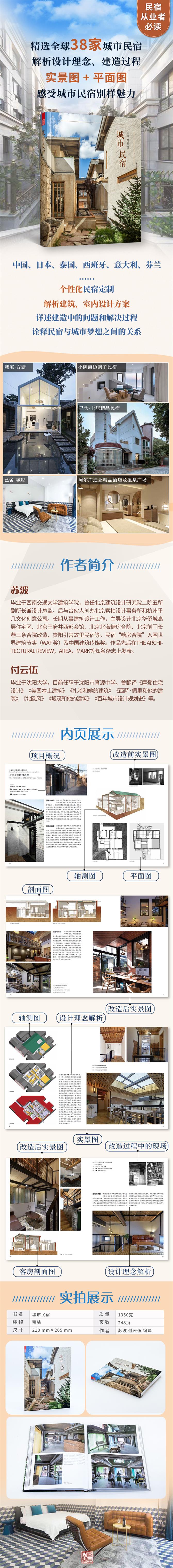 《城市民宿》精選全球范圍內(nèi)的38個(gè)案例,側(cè)重解析建筑及室內(nèi)設(shè)計(jì)等技術(shù)方面的內(nèi)容。書中每一個(gè)案例既有實(shí)景圖片和設(shè)計(jì)圖紙的展示,又有詳細(xì)的文字分析,為讀者展現(xiàn)了城市民宿的別樣魅力。本書還介紹了民宿建造過(guò)程中所遇到的問(wèn)題和解決過(guò)程,在每個(gè)案例結(jié)尾的部分,闡述了民宿與城市夢(mèng)想之間的關(guān)系,契合全書主題。
