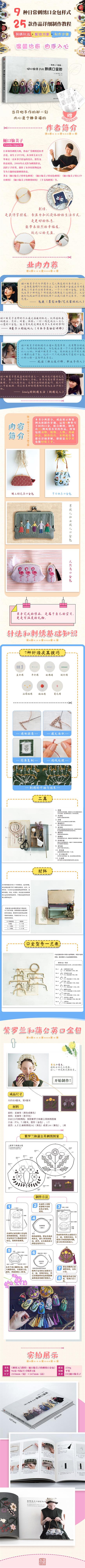 《刺繡入門教程:樋口愉美子的刺繡口金包》是一本刺繡和口金包結(jié)合的手工類書籍。本書主要分為兩部分內(nèi)容,成品展示及案例的具體制作內(nèi)容。本書的特點是將復雜的刺繡簡約化,在亞麻布和棉布為底部的基礎上的刺繡,手法簡單易懂,簡單的刺繡針法就可在較短的時間內(nèi)做出一幅精美的作品。全書作者運用9種大小型號不同的口金包,配合簡單的刺繡作品,制作出25種風格各異的口金包作品,圖案以動物和植物為主題,配合可愛的人物圖案。25種作品的制作方法都有詳細的講解過程。對布料配色也有講解,本書每個案例都有原大紙型、原大圖案、簡單的配色和基礎針法,即使是初學者也可輕松上手。