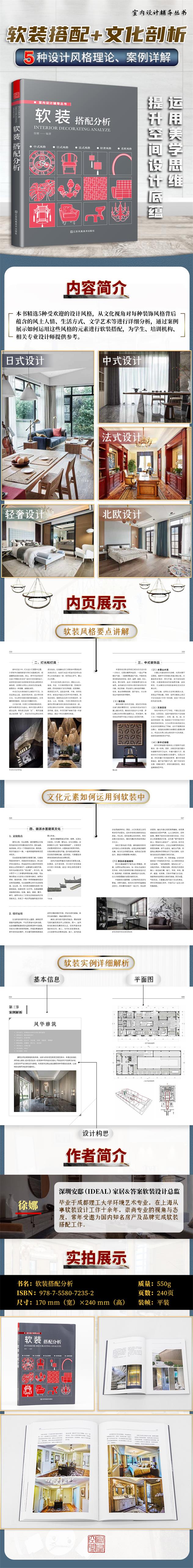 內(nèi)容方面,主要從提升設(shè)計師底蘊(yùn)的初衷出發(fā),從文化的視角對每一種裝飾風(fēng)格背后涵蓋的國家或民族的風(fēng)土人情、生活方式、文學(xué)藝術(shù)、行業(yè)規(guī)范和價值觀念等進(jìn)行了詳細(xì)分析,并通過案例展示如何進(jìn)行軟裝搭配,去偽存真,具有較強(qiáng)的指導(dǎo)意義,適合學(xué)生、培訓(xùn)機(jī)構(gòu)的學(xué)員以及相關(guān)專業(yè)設(shè)計師進(jìn)行參考。