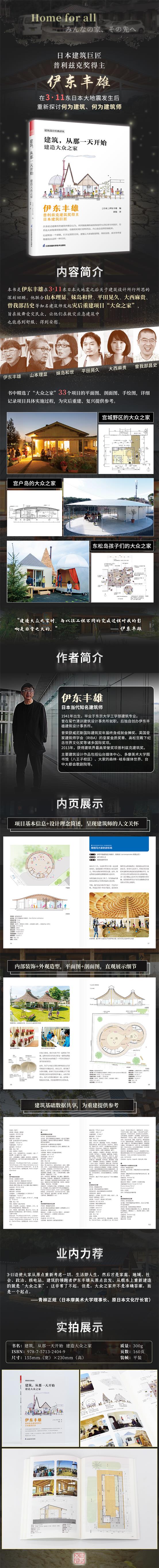 本書是伊東豐雄在3?11東日本大地震之后關(guān)于建筑設(shè)計所行所思的深刻回顧,他聯(lián)合山本理顯、妹島合世、平田晃久、大西麻貴、曾我部昌史等日本知名建筑師發(fā)起災后重建項目“大眾之家”,旨在鼓舞受災民眾,讓他們在救災應急建筑中也能感到舒服、得到安慰。書中詳細記錄項目實施過程并收集了項目平面圖、剖面圖及手繪圖。全書分為五章:走向大眾之家、什么是大眾之家、大眾之家,從東北開始、大眾之家,在熊本、大眾之家與熊本藝術(shù)城。