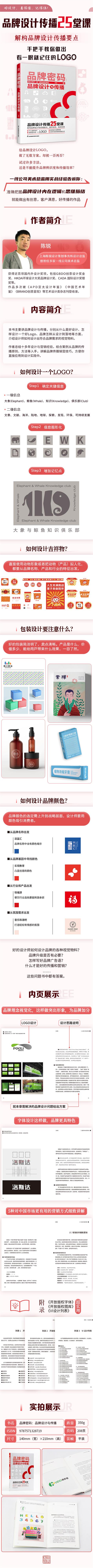 本書分為兩大部分:設(shè)計與傳播。前者主要講品牌的設(shè)計,分別從什么是好設(shè)計、怎樣設(shè)計一個好Logo、品牌怎樣從設(shè)計到落地等方面介紹設(shè)計師如何設(shè)計品牌各種視覺物料;后者主要講品牌的傳播,分別從品牌傳播三原則、品牌傳播中要避免的問題以及品牌創(chuàng)立需要準備的東西等方面入手,介紹品牌傳播需要注意的各種問題和宣傳銷營的技巧等??傮w而言,好的設(shè)計一定是邏輯先行,輔助傳播,落地漂亮的。作者結(jié)合自己對當前品牌的設(shè)計與營銷傳播兩方面的看法,讓本書內(nèi)容更加實用。