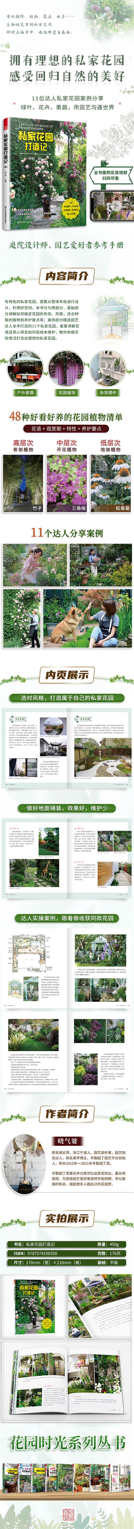 《私家花園打造記》用簡單易懂的方式講解了打造私家花園所需要了解的一些內(nèi)容,例如花園空間布局,打造不同花境所適合的各種植物和養(yǎng)護(hù)知識(shí),花園的裝飾等,更與讀者分享了一些精心挑選的私家花園打造案例,同時(shí)配以精美的圖片和詳細(xì)的文字說明,與讀者分享花園的打造經(jīng)驗(yàn),具有很強(qiáng)的實(shí)用性。這些案例都是由園藝達(dá)人提供的,這些園藝達(dá)人有豐富的園藝經(jīng)驗(yàn),這些經(jīng)驗(yàn)都是在打造自家花園的過程中摸索總結(jié)而來,并將這些經(jīng)驗(yàn)毫無保留的分享給讀者,讓您了如何打造花園及花園的后期維護(hù)所需要了解的一些知識(shí)。本書圖片精美,既賞心悅目又可以帶給讀者真實(shí)有用的參考。