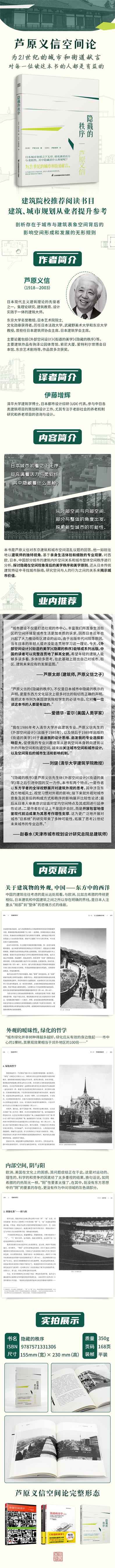 《外部空間設(shè)計(jì)》指引讀者進(jìn)入空間論的世界,進(jìn)而在《街道的美學(xué)》中更上一層樓,為讀者展示街道這一建筑與城市的界面空間的設(shè)計(jì)奧秘和美學(xué)。zui后對表象內(nèi)容加以深化拓展,在《隱藏的秩序》中為讀者剖析存在于城市與建筑表象空間背后的影響著空間形成和發(fā)展的無形規(guī)則。