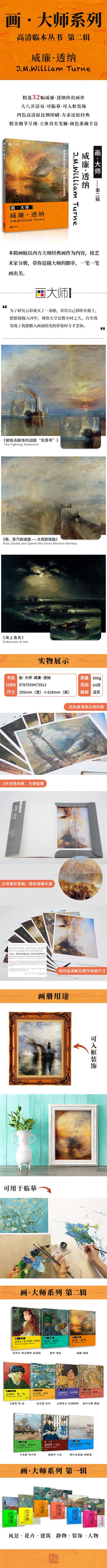 本系列畫帖以西方大師經(jīng)典畫作為內(nèi)容,主要以臨摹、賞飾為主,按藝術(shù)家分冊。每冊32張精選大師代表作。深入考慮國內(nèi)讀者需求和審美習慣,規(guī)避不良題材和內(nèi)容,每冊作品精挑細選。每張作品輔以作者及作品扼要講解、說明,并附原作規(guī)格尺寸,使讀者能夠更加深入地了解作者及原作,幫助讀者更準確地理解作品,從而做到在理解的前提下欣賞,和更有目的地臨摹學習。本冊為威廉·透納的作品,一本包括透納32幅珍貴畫作,《被拖去解體的戰(zhàn)艦“無畏號”》《雨,蒸汽和速度——大西部鐵路》《海上漁夫》《遇難船》《加萊碼頭》……活頁散裝、方便臨習,高清印刷、原作比例,是教學對話,裝飾的更好選擇。