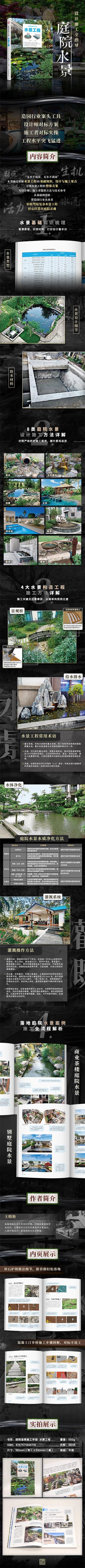 水景類型、水景設(shè)計(jì)細(xì)節(jié)及材料;第三章介紹了溪流、水簾瀑布、池塘、水池、游泳池、噴泉、壁泉、滴泉八類水景的設(shè)計(jì)與施工方法;第四章介紹了水景植物的選擇和種植知識(shí);第五章介紹了景觀橋、排水排水、水體凈化、灌溉系統(tǒng)等相關(guān)知識(shí)和具體案例。為庭院設(shè)計(jì)師、景觀設(shè)計(jì)師提供相關(guān)參考。