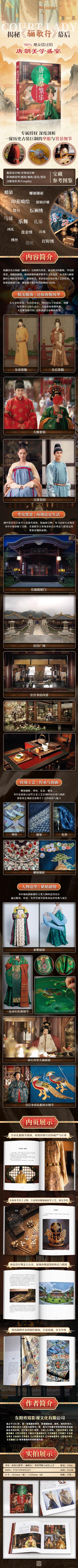 從民間百態(tài)到朝堂風云,從精致細膩的刺繡工藝到翩若驚鴻的舞蹈表演,本書通過豐富的圖文資料與深入的解析,將唐朝社會的方方面面呈現(xiàn)出來,每一個細節(jié)都透露出那個時代的繁榮與自信。對于影視愛好者而言,本書提供了大量珍貴的幕后制作信息,讓讀者得以窺見作品背后的創(chuàng)意與匠心;而對于歷史與文化研究者來說,它則是一份珍貴的參考資料,有助于他們更深入地了解唐朝的社會風貌與文化特色。