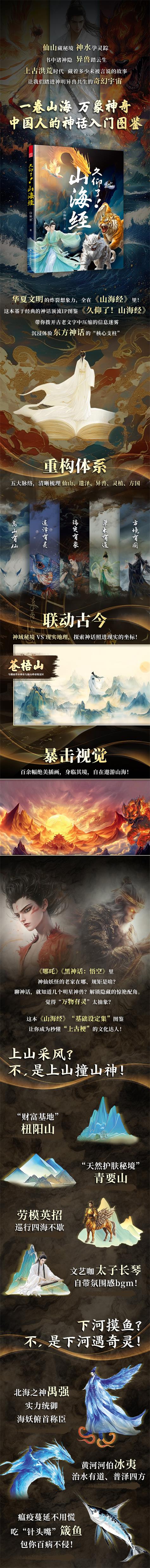 它精選五章經(jīng)典內(nèi)容,以“圖鑒”形式梳理仙山、神獸、方國(guó)等核心元素,既保留原文的古樸神韻,又用現(xiàn)代視角解讀背后的文化隱喻——西王母的威嚴(yán)、共工觸山的悲壯、扶桑與若木的日月神話,所有這些散落在古籍中的光怪陸離,都化作可觸可感的生動(dòng)圖景。