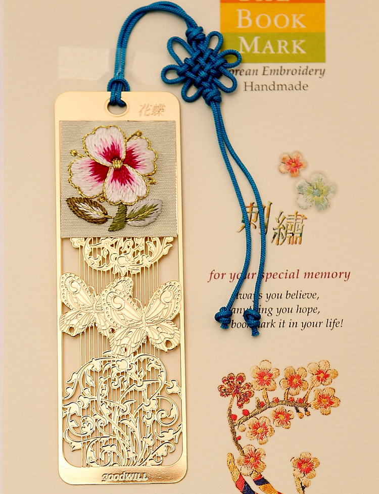 韓國Goodwill書簽采用24K鍍金,造型獨特多變,刺繡、鏤空打造,通透細(xì)致,薄如蟬翼,精細(xì)質(zhì)感?;?、葉、昆蟲等鮮活的姿態(tài)與生動的顏色被精美地定格在書簽里,讓您在書香四溢中呼吸自然的氣息,陪你在歲月中長久的感動。